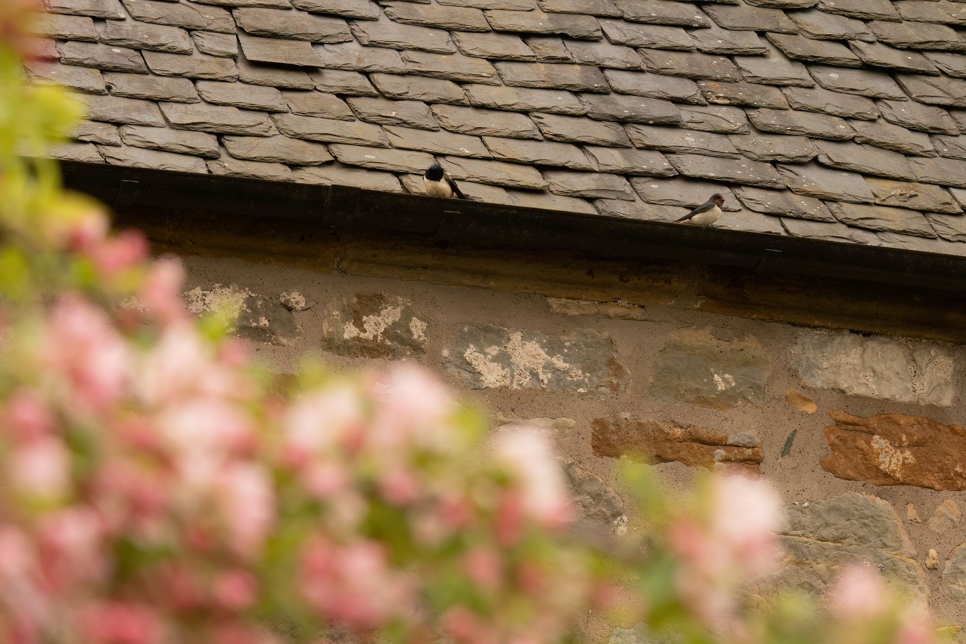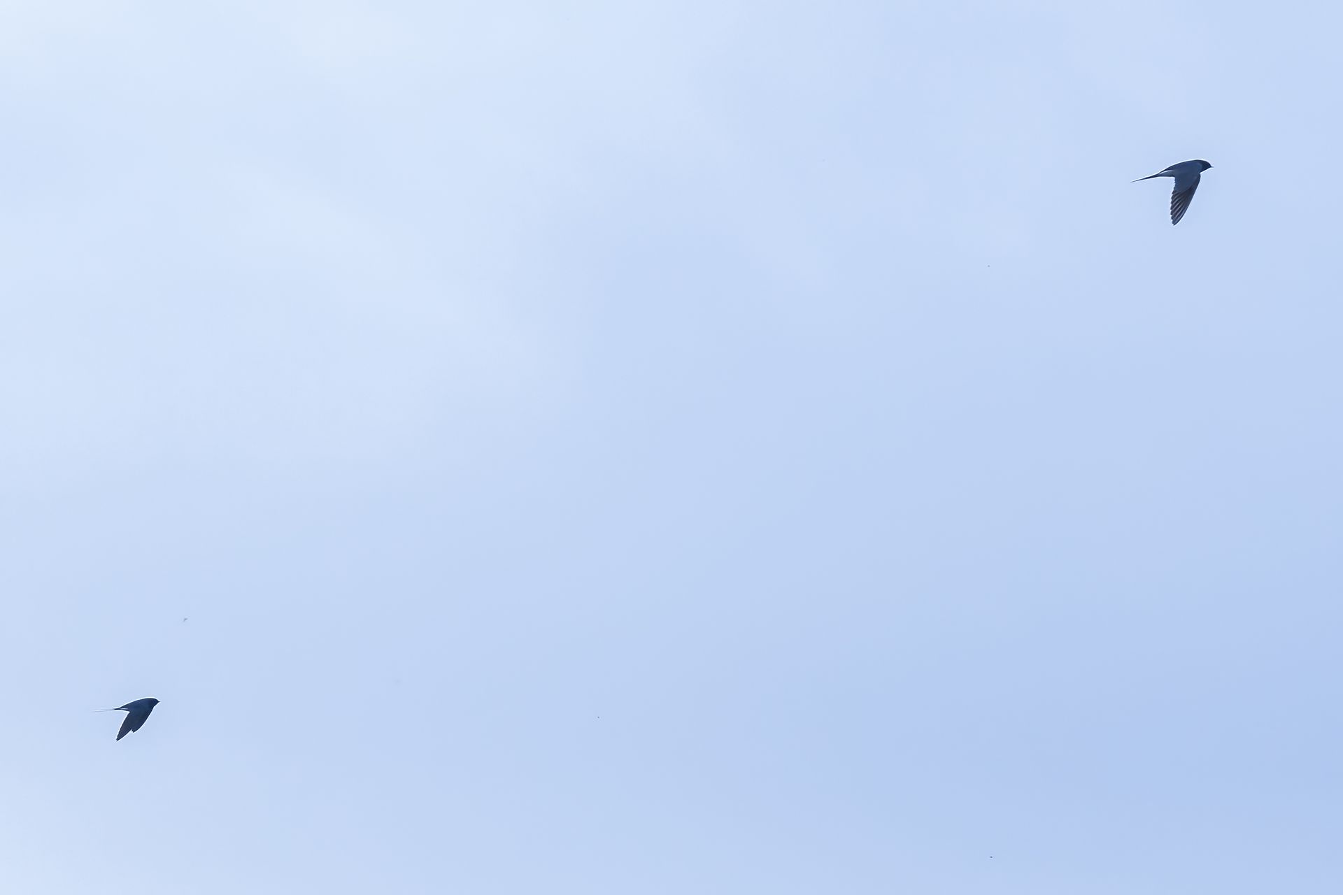 Above there are two very different images of swallows. The top one was taken using my normal wildlife settings, but the lower one required a fairly substantial change; my shutter was much faster at 1/2500, aperture f7.1 and ISO remained at 1000 as the day was fairly bright. I tried to capture the swallows at a shutter speed of 1/1000, but the were too fast and the blurred. The aperture went to f7.1 because there needed to be a much greater DoF to get the two birds into the frame and still be in focus. While taking the upper shot, I just walked up and took the shot. I had seen the swallows landing and the were not moving, so it was an easy shot. The lower shot was much more of a challenge. I had to study the flight patterns of many swallows. They were coming over a building and flying out over the fields before returning, which was when I was able to capture them. It probably took about 30 or 40 minutes till I was able to pick out the pattern of these two birds. Once I had the pattern, I was able to track them as they returned and get the shot. Although that sound simple, this is one of 30 shots, to get it right. Great fun though.
